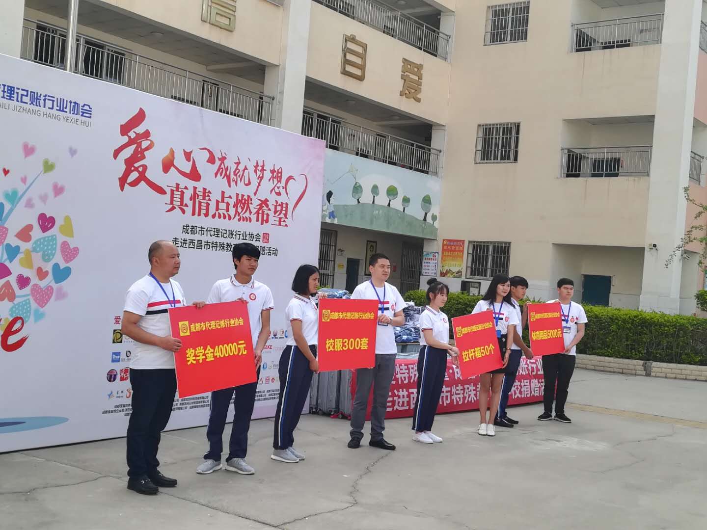 4月15日上午10點,由成都市代理記賬行業(yè)協(xié)會主辦,成都市代理記賬行業(yè)協(xié)會老板俱樂部承辦,西昌市電視臺、西昌市人民廣播電臺合辦的愛心捐贈公益活動在西昌市特殊教育學校隆重舉行!作為協(xié)會理事成員單位的成都成信宏財稅咨詢有限公司,由總經(jīng)理何佳林代表,全程參與了活動。整個活動獲得了圓滿成功!